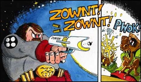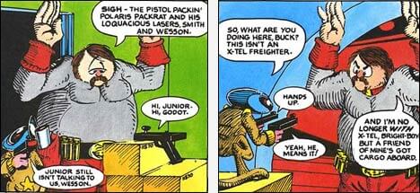 Back in the early 80’s I found a goofball comic about psychotically reprehensible rabbits in space. I thought, “I can do that.†So I decided to write a goofy science fiction story that would have a gunfight or an explosion on every page. That was the first Buck Godot story.